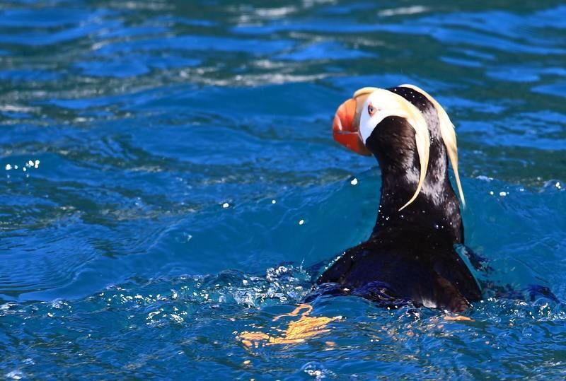 C'est l'anniversaire de notre fille ce jour, quarante ans, cela nous donne un coup de vieux et à elle aussi!!!! Nous allons essayer d'aller pêcher ce matin dans la Kenai river mais loin de la foule et bien ce n'est pas simple, nous nous heurtons à des zones fermées d'autres ouvertes sur quelques mètres (300 mètres) où les pêcheurs sont espacés de deux mètres et ils pêchent à la cuillère. Pas de place pour moi qui pêche à la mouche, faut aller ailleurs. Oui mais où? Nous allons revenir sur nos pas, puis reprendre la route en direction de Seward sans pour cela trouver d'endroit où faire nager la mouche, pas simple ce pays. Finalement je vais capituler et nous partons directement sur Seward que nous atteindrons en milieu d'après midi, nous devons y retrouver nos amis Sylvie et Christian pour se faire une belle balade en bateau pour aller à la rencontre des mammifères marins, des oiseaux et des beaux paysages.