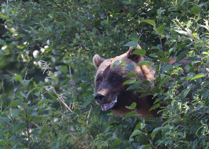 Nous nous posons au bord l'océan pour la nuit et je peux aller pêcher, quatre saumons viendront me faire un coucou, je suis super content, ils sont très gros et je les pêche avec un fil de 20/100eme alors qu'il me faudrait au minimum du 50/100eme, ça c'est du sport et je les ramène jusqu'au bord, belles bêtes qui repartirons tranquillement. Les loutres viennent à quelques mètres de moi, du vrai plaisir de les voir ainsi. Vers 19h30 les ours reviennent, nous les suivons jusqu'à l'embouchure du torrent que les saumons empruntent. Nous allons les suivre durant plus d'une heure et cette fois-ci ils sont au calme et tranquilles, la grosse foule est partie. Retour chez Hugo, dîner et dodo vers 23h30, il fait jour et nous sommes complètement déboussolés par les horaires, à demain pour une nouvelle journée.