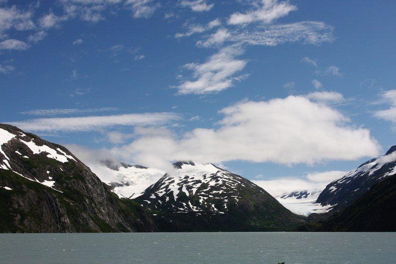 Nous quittons Matanuska River pour continuer la Glen Hwy en direction de Valdez et profitons des merveilleux spectacles que nous propose cette route. Tour à tour nous côtoyons les glaciers, les rivières et des paysages qui nous transportent en Argentine car nous y retrouvons les couleurs minérales des Andes. Bientôt nous quittons la Glen Hwy pour tirer direct au sud par la Richardson Hwy, encore une route de toute beauté. Nous ferons un arrêt déjeuner face aux sommets des Wangels Mountains, magnifiques dans leur écrin blanc. Comme nous avons tout notre temps, nous faisons un stop pour la nuit dans un State Park Campground au bord du Blueberry Lake où je vais pouvoir pêcher si les moustiques ne sont pas trop envahissants. Nous trouvons une place au bord du lac et nous comprenons vite pourquoi, le coin est saturé par les mouches et les moustiques mais à l'intérieur d'Hugo nous sommes tranquilles, il est très hermétique.