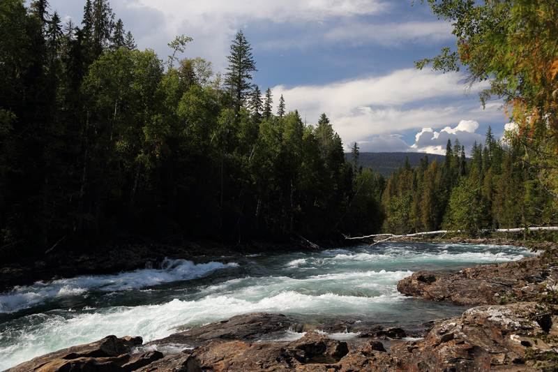 Nous arrivons sur Clearwater vers 12h30 et nous passons par le visitor center pour renouveler notre vieille carte et prendre quelques informations puis nous prenons la route du parc. Nous constatons rapidement que nous ne sommes pas seuls, il y a beaucoup de camping car de location ainsi que de voitures de touristes, nous ferons avec. Nous sommes vite aux premières chutes et les bons souvenirs reviennent à la surface, vingt ans déjà, soit cela nous rajeunis ou soit cela nous donne un bon coup de vieux, à choisir ! En plus il fait très beau, quelle chance nous avons, profitons-en et cela nous donne d'autres idées pour la suite du voyage. La météo étant bonne pour encore une semaine minimum, nous décidons de ne plus aller sur Vancouver et Victoria que nous connaissons déjà et qui sont des grandes villes mais nous allons nous diriger sur Banff, Lake Louise, Yoho,Kootenay et randonner dans ces parcs splendides. En plus en septembre il y a des rassemblements d'animaux, la végétation change actuellement et commence à prendre des teintes d'automne, nous ne le regretterons pas.