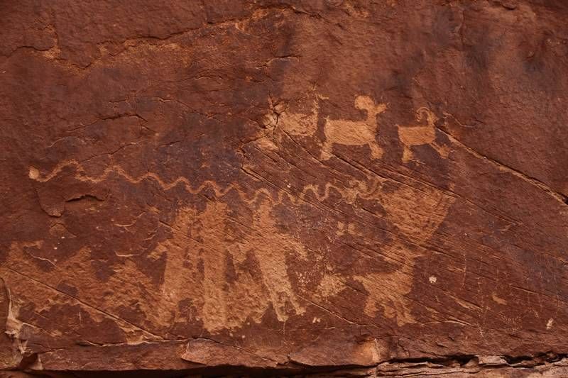 Nous prenons notre temps pour redescendre, croisons une française qui nous demande si nous sommes les français qui voyage avec le gros 4x4 et nous entamons une discussion bien sympathique avec cette dame qui vit aux USA depuis 35 ans. Nous sommes de retour chez Hugo vers midi, nous allons rentrer au campground que nous avons réservé ce matin en passant sinon nous n'aurions pas eu de place et déjeunons d'un très bon filet de saumon sauvage acheté à Moab. Cet après -midi il me faut faire tout le graissage d'Hugo, je vais y passer deux heures, rien ne m'échappe, la suspension en a besoin. Vers 17h00 nous partons à pied pour découvrir des pétroglyphes quand Françoise aperçoit un magnifique chat sauvage, séance photos, je m'approche doucement, il ne bouge pas, puis fait un saut sur le côté, il me regarde, sacré morceau de chat en attendant, c'est vraiment gros.