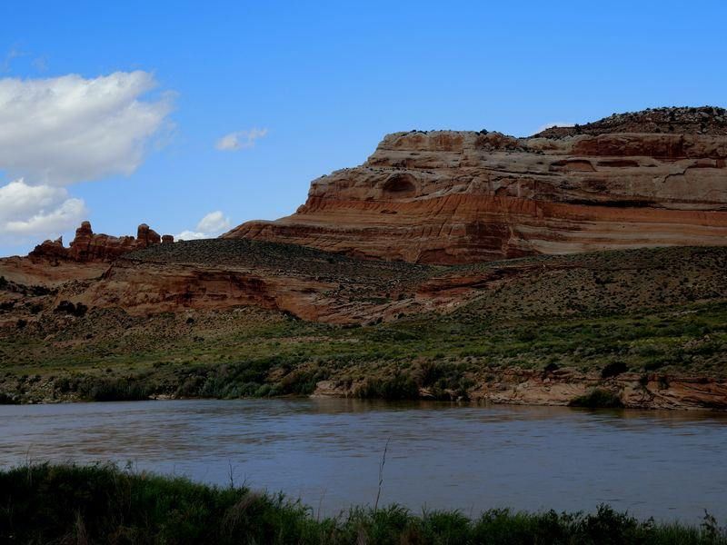 Nous quittons Dinosaur assez tôt pour rejoindre Moab où nous aurons quelques courses à faire et aussi trouver un garage pour me resserrer un écrou de barre de direction qui est complètement libre. Je le resserre à la main, cela devrait aller pour faire les 330km, mais je vais y aller doucement. Nous allons prendre la superbe route 128 qui relie Moab en suivant les méandres du Colorado, il fait beau c'est un festival de couleurs sur les roches selon l'exposition au soleil. Nous cherchons aussi un campground, il y en a de nombreux tout au long de cette route et nous ne pouvons que constater que tout est retenu, pas une place de libre, c'est vraiment incroyable en cette fin septembre. Nous arrivons sur Moab vers 14h00, allons faire les courses et ensuite nous trouvons un spécialiste 4x4 qui me resserre cet écrou en me disant que ce n'est rien, c'est normal. Pour moi cela ne l'est pas aussi je vais continuer de surveiller cet écrou. Bon maintenant il faut se trouver un endroit pour dormir, nous regardons la carte et partons en direction du sud et en sortie de Moab nous nous trouvons un RV Park où il reste une place pour nous, nous la prenons car nous sommes fatigués et ne voulons pas courir plus.