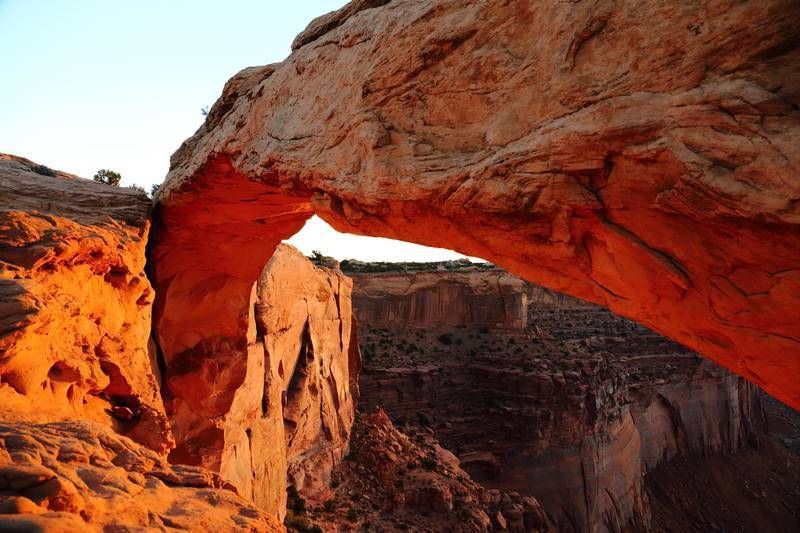 Le clairon sonne à 5h30, nous allons profiter du beau temps pour faire le lever de soleil sur Mesa Arch qui se situe à 35km d'ici. petit déjeuner rapide, toilette encore plus rapide et nous quittons le campground à 6h15, nos voisins doivent être contents, nous avons fait le moins de bruit possible. L'entrée du parc n'est pas gardée à cette heure ci, pas de garde, nous continuons notre route et arrivons au parking, waouh déjà plein de monde, c'est vraiment incroyable, nous filons sur le sentier car l'aube pointe et le soleil ne va pas tarder à se montrer tout là bas sur les Manti La sal Mountains. Nous arrivons au pied de l'arche et ne savons pas où nous allons pouvoir nous installer, il y a une bonne soixantaine de personnes et d'autres arrivent derrière nous. Comme ils sont tous massés au milieu de l'arche, je me mets complètement à droite ce qui va me permettre d'avoir l'arche sur sa longueur et surtout de pouvoir capter les rayons du soleil sur la base de l'arche. Je suis bien sauf que des asiatiques arrivent, un car entier certainement et ils ne manquent pas d'air, faut montrer un peu les dents et tous les photographes présents se plaignent de leurs façons de faire. Pour ma part étant au bord du précipice, ils ne peuvent pas passer de l'autre côté ce qui me laisse relativement tranquille et je peux ainsi profiter du magnifique spectacle qui s'offre à moi. Dès que le soleil pointe sur l'arche, il n'y a que quinze minutes maxi possibles pour faire les photos, après c'est terminé. Je suis comblé par ce spectacle et Françoise aussi, nous plions bagage vers 8h00 avec 100 photos dans la boîte. Nous partons maintenant vers une balade plus difficile et où nous serons seuls, Aztec Butte, ruines indiennes sur un gros mamelon à 3km A/R. Pas d'asiatique ici pour les photos, je suis seuls car il faut faire un peu d'escalade et Françoise préfère rester à m'attendre, elle ne perdra rien car ce n'est pas facile de trouver ces ruines. De retour chez Hugo, nous partons pour un autre point de vue avant que le soleil ne soit trop haut dans le ciel, les couleurs sont encore belles, nous allons à Upheaval Dome, 3km A/R puis nous repartons au Grand View Point pour admirer le spectacle sur White Rim et The Maze. Nous ferons d'autres arrêts sur la route du retour au campground où nous serons vers midi, crevés mais contents de cette matinée à courir. Après-midi repos, bricole dans Hugo, MAJ du site, tri des photos, bref de quoi s'occuper, demain sera un autre jour!