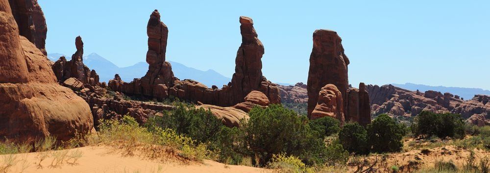 Il fait un temps superbe ce matin et pas vraiment froid malgré l'altitude, nous nous préparons tranquillement et serons prêts à partir vers 9h00. Nous prenons la direction de Arches National Park que nous aimons beaucoup pour y être déjà passé une demi-douzaine de fois mais cette fois-ci nous allons faire quelques pistes afin de découvrir les arches inaccessibles en véhicule normal. Nous sommes frappés par la queue qu'il y a à l'entrée, jamais vu cela même en plein été, beaucoup nous disent que c'est une question de climat, très accessible en ce moment avec moins de 30° dans la journée. Toujours est-il que nous sommes perplexes et nous nous posons des questions, allons-nous trouver une place au campground, le seul, qui se situe à Devils Garden, tout au bout du parc? Il est 9h30 quand nous prenons la route, à l'entrée la ranger nous dit que c'est "full", aie, nous y allons tout de même. Dans le parc c'est la grande foule, pas moyen de trouver une place sur les bas côtés là où les arrêts sont autorisés et les parkings sont pleins, fin septembre tout de même et il n'y a pas que des retraités.