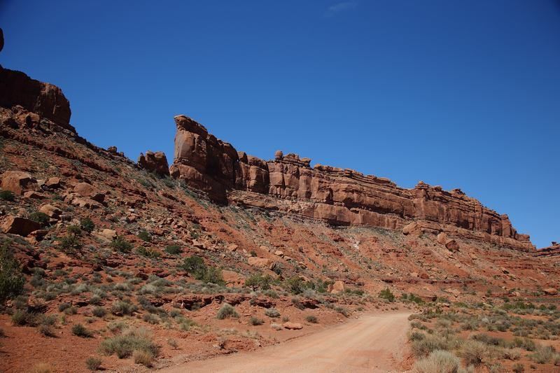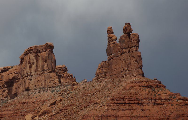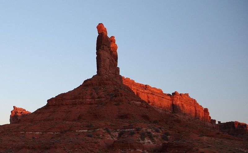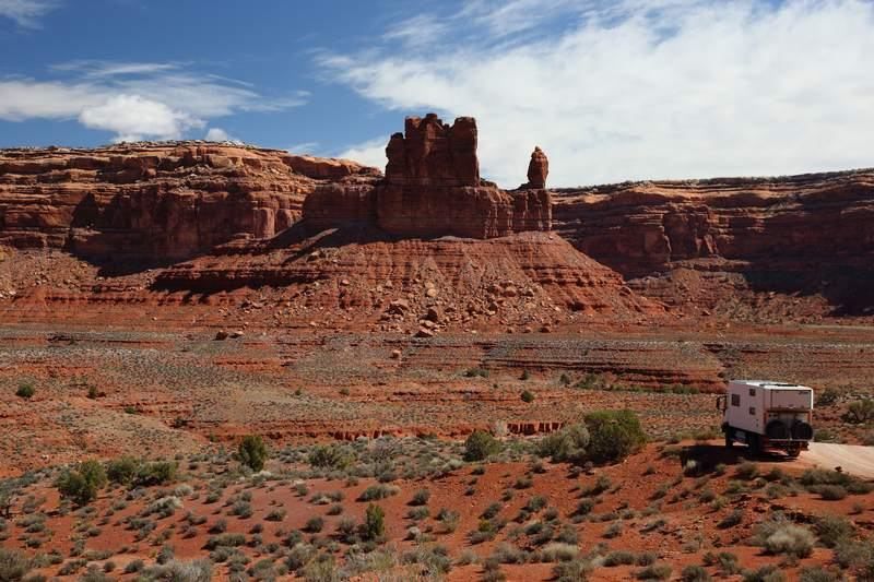 Nous quittons le bivouac pour nous rendre de nouveau dans la "Valley of the Gods" toute proche, le temps est superbe et nous devrions avoir de belles vues, certainement plus belles qu'hier sous les nuages d'orage. Le fait est que nous nous régalons et nous ne regrettons pas de la faire dans le sens opposé à celui que nous avions toujours fait en y accédant par la Hwy 163. Là nous avons pris la N261 et sommes entrés par le nord. Jusque 13h00 nous ne croiserons que deux 4x4, nous faisons un stop pour le déjeuner et allons continuer notre balade avant de revenir sur nos pas et trouver un bivouac pour la nuit. A 16h00 nous sommes installés, je charge les photos, Sylvie prépare les crêpes pour le goûter, faut bien ça pour se remettre de nos efforts!!!! Françoise préparera les sardines en boite mélangées à du "Philadelphia" sorte de fromage à tartiner du style St Moret chez nous et c'est drôlement bon, pour l'apéritif car nous sommes dimanche ce jour. Dehors il fait beau mais le vent s'est levé et nous serons bercés cette nuit au bivouac.