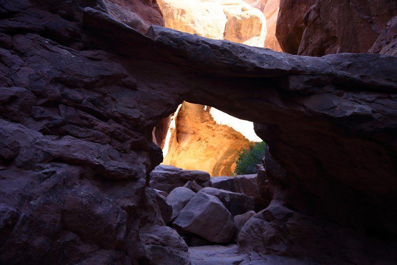 La balade va durer trois heures et sera très sympa, nous y voyons des arches, des bridges, des formes de rochers toutes particulières et nous sommes presque au frais car le soleil ne pénètre pas partout. Nous serons de retour vers 12h30 au parking et faisons la visite d'Hugo pour ceux qui ne le connaissent pas encore. Petite séance photo à l'extérieur et nous allons quitter nos amis qui eux restent sur Moab encore quelques jours, quant à nous, nous allons aller faire le plein de ravitaillement, trouver un distributeur de billets et prendre la route vers "Gobelin Valley" où nous bivouaquerons ce soir. Demain nous voulons être assez tôt sur "Capitol Reef" pour trouver une place au campground. Nous quittons Moab vers 15h45 et serons sur le lieu de bivouac à 17h45, nous sommes trois véhicules avec chacun au minimum 1000 mètres carrés. La température étant redescendue il est agréable d'être dehors à l'ombre d'Hugo, la nuit sera douce.