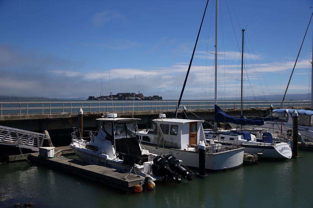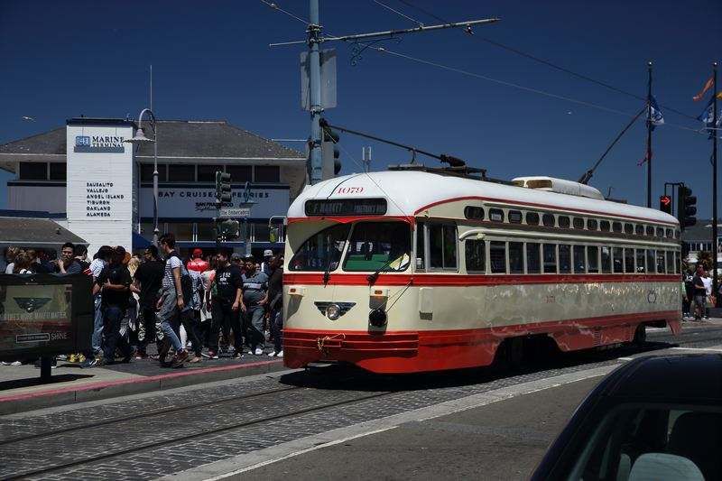 8h30, nous roulons vers SF sur la Hwy 120 jusque Manteca et ensuite droit sur Oakland sur la 580 puis traversée du bridge payant (6$) vers SF. Nous traversons tout le centre de SF par des petites rues et filons directement au parking de la Marina, juste en face d'Alcatraz. Nous laissons Hugo et partons nous promener vers le petit parc qui est juste à côté et allons jusqu'au "Fisherman Wharf", marché au poisson très réputé avec de nombreux touristes de tous pays et surtout de bons restaurants. Nous en choisissons un sympa et nous y faisons un bon repas de midi avant d'aller négocier pour l'achat d'un nouvel objectif afin de remplacer le 24/105 Canon qui a dix ans. Chez nous il est vendu entre 1000/1200€, ici à force de parlementer je fini par l'obtenir à 800$ soit moins de 600€, une très bonne affaire pour moi, je suis satisfait.