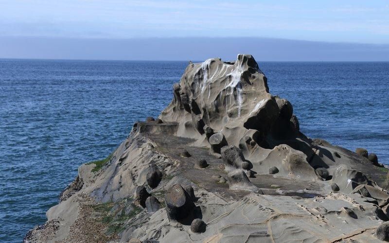 Nous descendons la côte vers Coos Bay et avons la chance d'avoir un temps correct, peu de kilomètre à faire, environ 80. Nous faisons quelques arrêts photos en cours de route et arrivons vers 11h30 dans un petit parc en bordure d'océan. La plage n'est pas loin aussi nous y allons avant de déjeuner, elle est immense et nous sommes quasiment les seuls sur le sable, faut dire que la température n'est que de 18° et pour la bronzette c'est un poil juste! Nous repérons un endroit où nous irons faire une balade cet après-midi, cela semble attrayant aussi nous rentrons pour nous restaurer un peu avant de revenir sur la plage et faire la balade que nous avions vue. Nous découvrons un endroit très sympa et y regardant de près, nous voyons des anémones de mer dans les trous d'eau, des formes de rochers assez proches de celles rencontrées dans les canyons et aussi des oiseaux. L'endroit est joli et le soleil nous aide bien pour apprécier ces lieux. Nous serons de retour au campground vers 17h30 et je prépare le BBQ pour cuire des filets de sole pour ce soir et des côtes de porc pour demain. La chaleur du feu nous fait du bien, il ne fait plus que 14° dehors et nous dînons en extérieur face au feu, c'est bon et chaud à la fois.