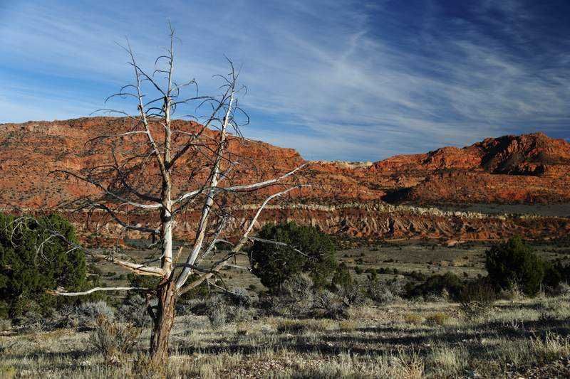 Nous nous levons avec le soleil après une nuit presque correcte, l'effet du décalage commence à s'estomper. Dehors la montagne est rouge, je sors pour faire quelques clichés de ces moments magiques. Nous quittons le Snow Canyon à 9h30 et partons faire les dernières courses avant de filer vers Kanab distant de 150km et où nous serons à midi. Nous retrouvons nos amis comme convenu et sommes vraiment heureux tous les quatre de nous revoir, cela faisait six mois que nous les avions quittés à Moab. Sylvie nous a préparé un succulent repas et nous allons papoter dans Cisco jusqu'à la tombée de la nuit vers 16h30. Nous rejoignons HugoII à ce moment et allons finir la journée sur le web car nous avons une petite connexion à la station Texaco où nous nous sommes posés pour la nuit. Nous y sommes que nous quatre en ces périodes creuses pour le tourisme et tout va bien. Nous réussissons à tenir jusque 20h30 et partons nous coucher à ce moment, dehors la température est de 1.5°, il va faire froid demain matin!