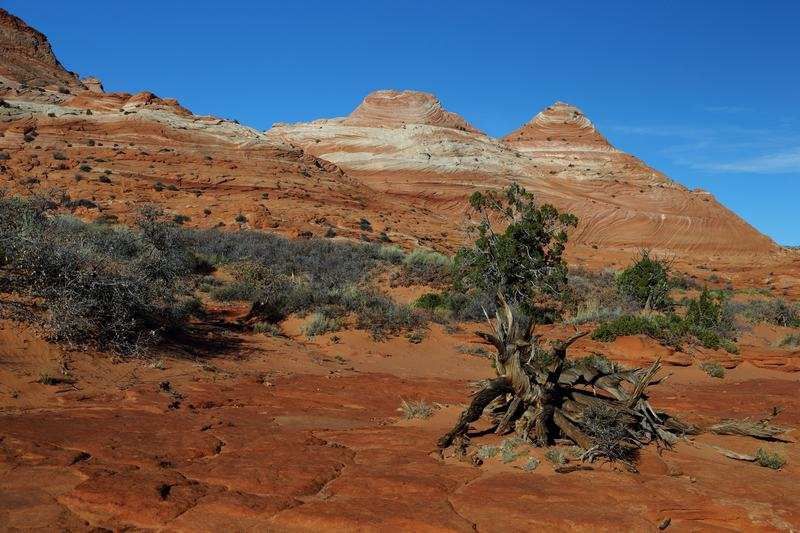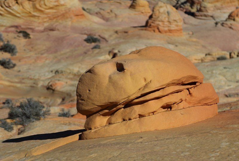 Nous avons une carte avec des photos fournies par le BLM de Kanab mais j'ai aussi les "WayPoints" sur mon GPS de randonnée, pas de risque de se perdre dans ces paysages lunaires. C'est beau tout du long et nous atteindrons le but de cette balade au bout d'une heure trente sur un superbe parcours sans sentier.