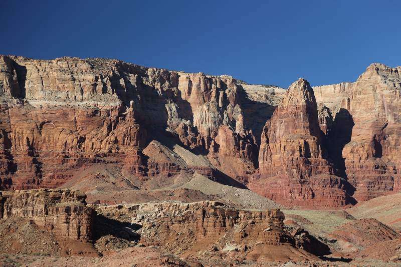 La nuit fût bercée par la Vague, nous avons rêvé que nous surfions sur ces parois extraordinaires de beauté. Aujourd'hui journée de transition et retour en des lieux différents mais où nous trouverons également de quoi nous émerveiller. Vers 9h30, nous prenons la piste "House Rock Road" en direction de Marble Canyon et Lees Ferry.
