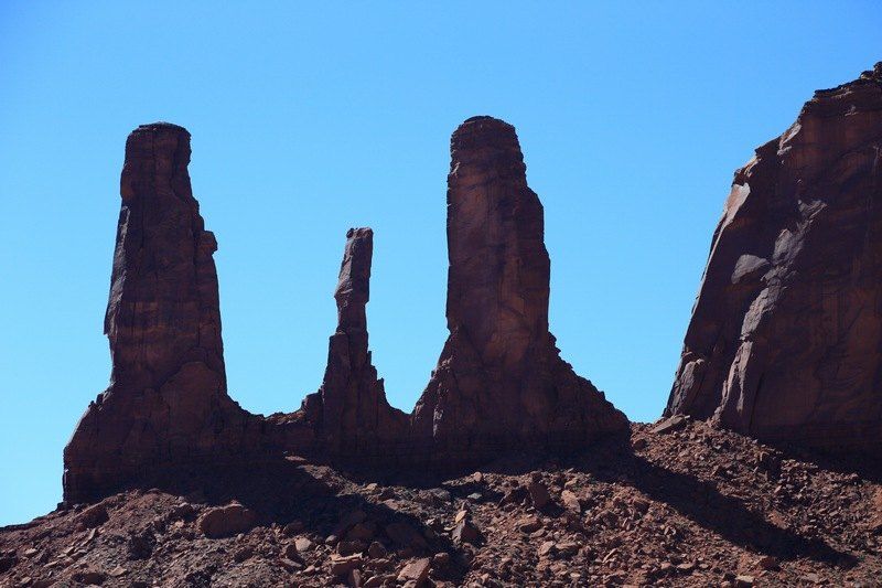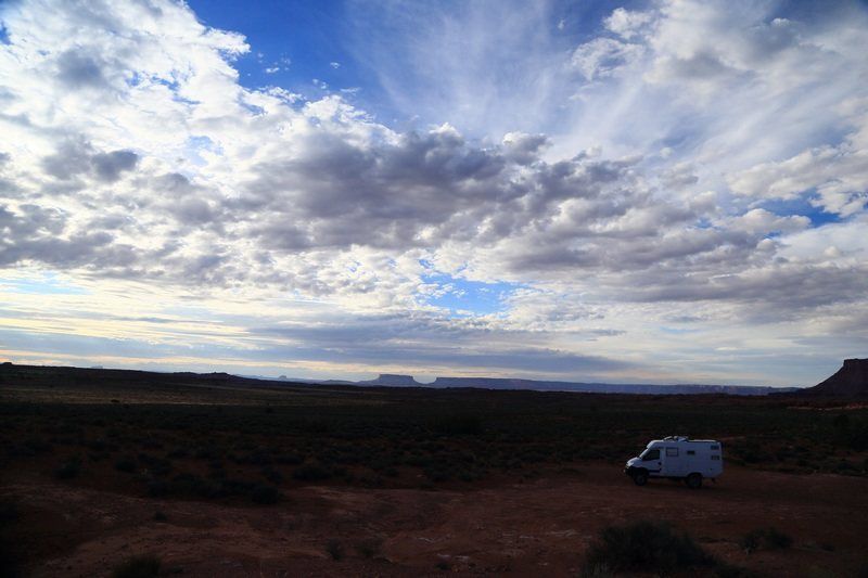 Décision est prise d'aller sur Moab ce matin pour me trouver un filtre polarisant et ensuite nous reviendrons sur les Needles dans Canyonlands National Park. Nous quittons le Goulding's Lodge assez tôt et longeons les "mesa" de Monument Valley, stop photos obligatoire. Au loin les La Sal Mountains semblent bien enneigées, les différentes teintes rendent le paysage très beau. Nous serons sur Moab vers midi et arrivons facilement au magasin photo où je trouve mon bonheur. Nous déjeunons sur le parking de la "laundry" où nous avons nos habitudes ici et profitons du WiFi car cela va être terminé pour un moment avant d'en retrouver.