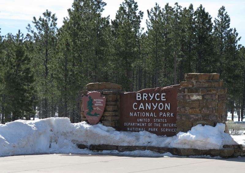 Nous traînons un peu ce matin et profitons des premiers rayons de soleil avant de partir vers Bryce Canyon où nous espérons trouver la neige. Nous quittons Zion vers 9h30 et filons vers la sortie du parc non sans faire quelques photos de ces belles parois. La sortie des tunnels est toujours spectaculaire et malgré une quinzaine de passages ici nous sommes toujours émerveillés pas ces paysages de roches aux couleurs superbes. Nous n'avons que 120km à faire ce matin mais nous allons prendre notre temps si bien que nous arrivons sur Bryce vers midi. Nous passons le contrôle d'entrée et faisons tout de suite le stop au campground du parc car il y a du monde et une petite partie seulement est ouverte. Nous retenons un des rares sites restant et partons faire les points de vue de ce parc extraordinaire. Il y a de la neige partout, c'est magnifique et le soleil rend ces paysages encore plus beaux, un vieux rêve se réalise pour nous, voir Bryce sous la neige, nous sommes servis.