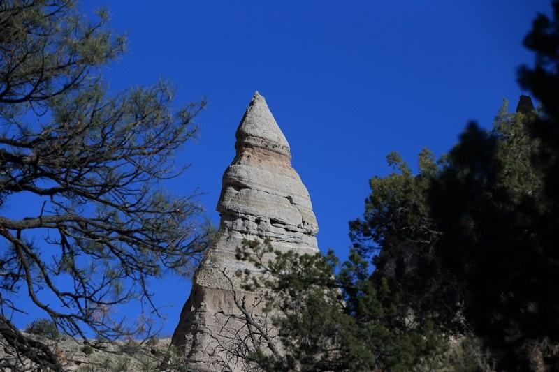 Encore une nuit fraîche, -4° de nouveau ce matin mais comme le soleil chauffe vite pas de souci et puis le chauffage nous aide beaucoup. Ce matin nous prenons la direction d'un site qui devrait être remarquable "The Tent Rocks" toujours plus au sud et en direction d'Albuquerque et 265km à faire.