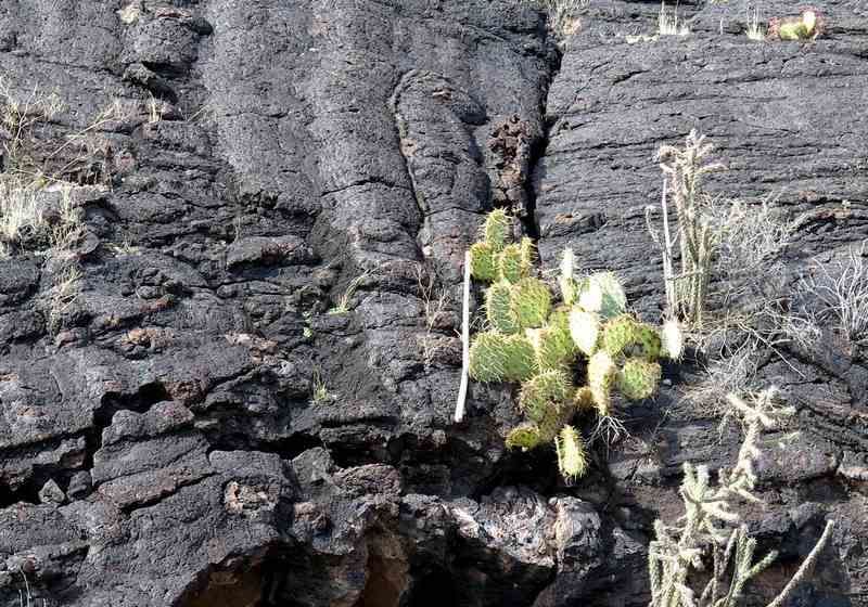 Et bien ce campground de Cochiti Lake aura été très agréable et superbement bien entretenu avec douches et de quoi faire les vidanges et le tout pour 12$. Nous partons vers 9h00 et nous avons 320km pour nous rendre encore plus au sud jusque Carrizozo et faisons un stop dans le petit parc de "Valley of Fire" tenu par le BLM et avec un campground. Rien à voir avec celui du Nevada où nous aimons aller, ici ce n'est qu'un champ de lave noire où pousse une végétation incroyable de plantes grasses naines et géantes. Après nous être installés, nous partons faire le tour du petit sentier qui permet d'approcher cette lave et la végétation mais le fort vent qui règne ici ne nous permet pas de rester longtemps. Si demain nous avons le même vent sur "White Sand" nous risquons de ne pas trop nous y balader, cela serait dommage car nous attendons depuis très longtemps pour nous y rendre.