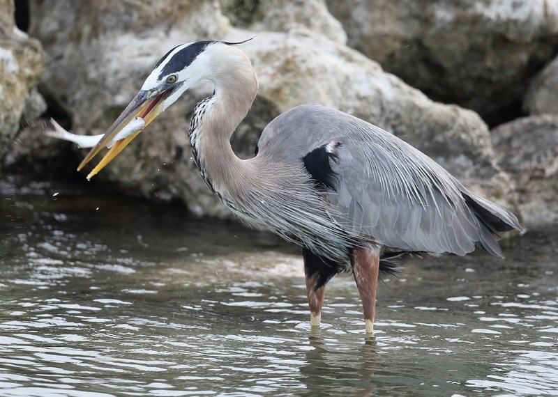 C'est dimanche aujourd'hui donc repos pour nous, nous en avons bien besoin, la journée commence par des pancakes que Françoise réalise parfaitement, c'est bon. Nous quittons notre emplacement en fin de matinée et nous partons à la découverte des marais du nord de la Floride. Il y a beaucoup de pêcheurs en kayaks, pas facile de naviguer autrement par ici, quelques oiseaux également dont un héron bleu qui va me retenir un bon moment. Vers 12h30 nous retournons au "State Park" pour y faire le "check in" des deux nuits à venir et ensuite nous allons au parking de la plage. Nous y prenons notre déjeuner puis nous allons essayer de nous baigner et là ce n'est pas gagné car l'eau est bien plus froide que 100km au sud. Je vais entrer jusque la taille et ressortir sans avoir fait "plouf", ça caille trop, donc le dernier bain aura été pris à Sebastian. C'est l'orage qui nous fait partir, comme hier la pluie tombe en très grosses averses de quelques minutes, le tonnerre se fait entendre, nous partons nous installer au campground attendre la fin de journée tranquillement.