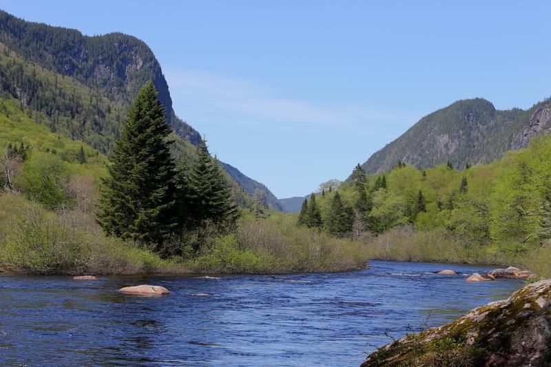 Il fait encore grand beau ce matin, nous prenons la direction du "Parc de la Jacques Cartier" à environs 45km de Québec. Nous y serons vers 11h00 et nous nous rendons directement au centre d'accueil pour notre permis de camper. Nous nous installons, prenons notre déjeuner puis en tout début d'après midi nous partons faire une randonnée de 3h au bord de la rivière Jacques Cartier. C'est très sympa et nous découvrons de petites montagnes bien boisées, une superbe rivière où j'aimerais bien pêcher et en plus nous sommes seuls ce qui est un plus pour la faune. Mis à part quelques oiseaux, nous ne verrons pas autre chose, ici c'est surtout en soirée et le matin tôt que la faune se fait observer. Au retour nous nous posons afin de boire un peu d'eau et une paruline à calotte noire vient nous faire la causette à distance respectable, elle est magnifique.