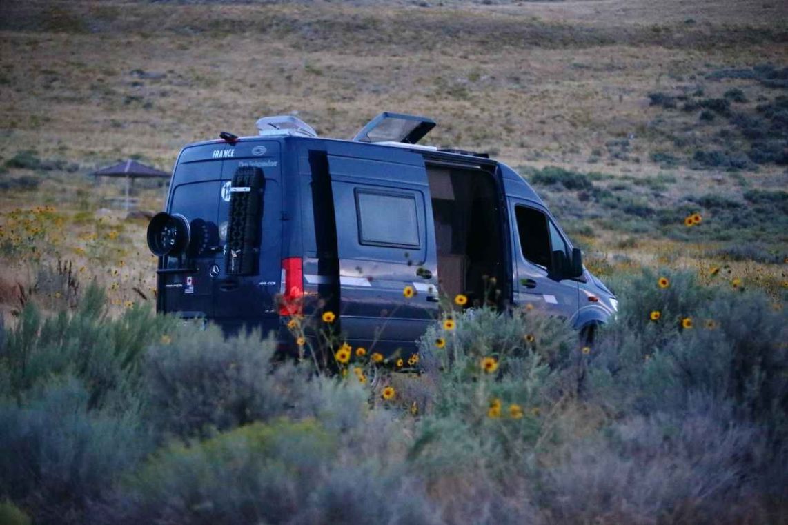 Rien de spécial ce jour si ce n'est que nous quittons le Yellowstone pour nous rendre sur Idaho Falls afin de trouver un garage Mercedes pour regarder un voyant qui ne cesse de s'allumer et qui peut déclencher l'Airbag côté conducteur et à tout moment. Donc 270km à faire sous un soleil de plomb, 35° en arrivant vers 13h00. Nous faisons quelques courses au Walmart du coin et n'avons pas envie de dormir ici ce soir aussi nous allons longer la Henry Fork River et nous trouver un petit coin sympa et au calme pour passer la nuit. Demain matin direction le Mercedes que nous avons trouvé sur le net.