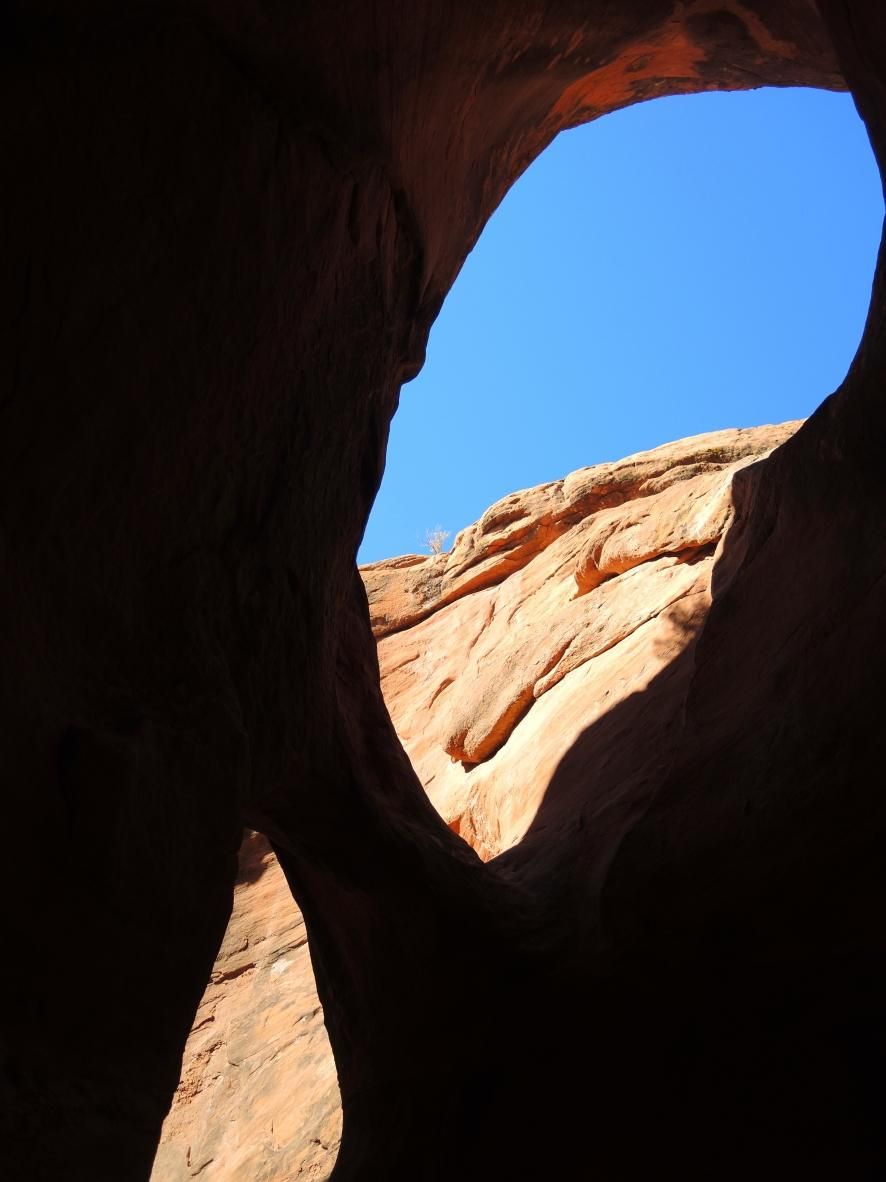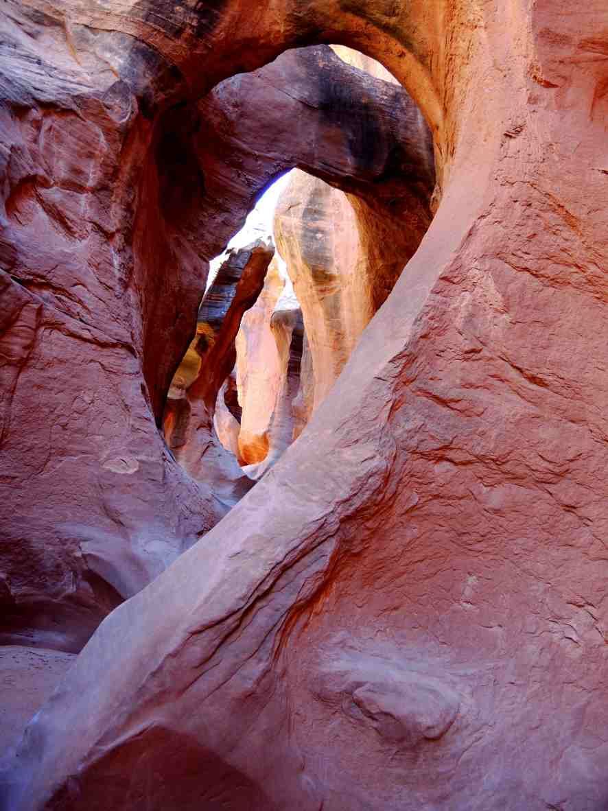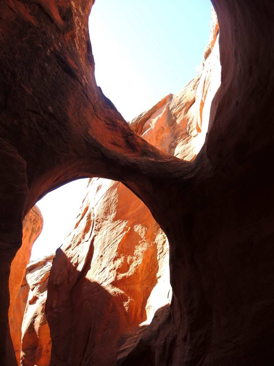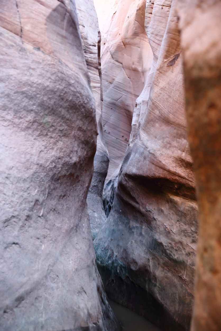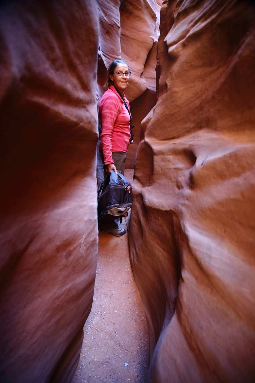 Nous ne mettrons que 40 minutes pour atteindre l'entrée de Spooky, il fait très sombre à l'intérieur mais le soleil va vite entrer pour nous éclairer. C'est vraiment pas large dans ce slot et je me souviens de la phrase de Sylvie " il ne faudrait pas un tremblement de terre sinon nous sommes écrabouillés", on ne peut pas dire mieux. Nous irons au fond du canyon et ferons demi-tour et cette fois ci le soleil est bien présent, maintenant direction Peek a Boo.