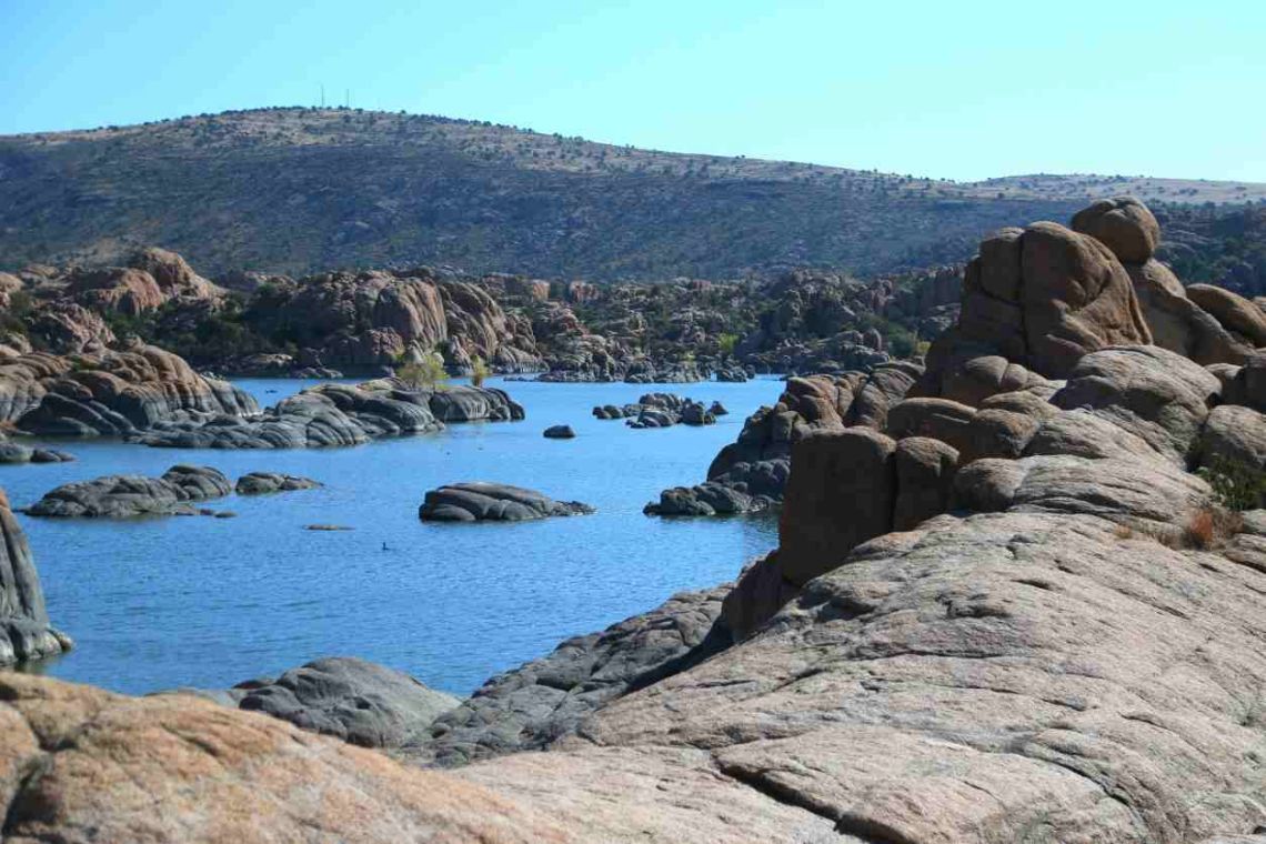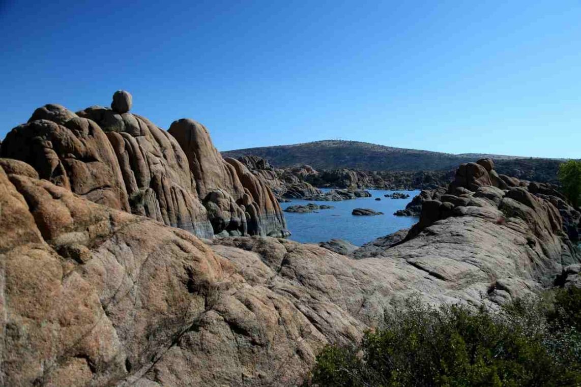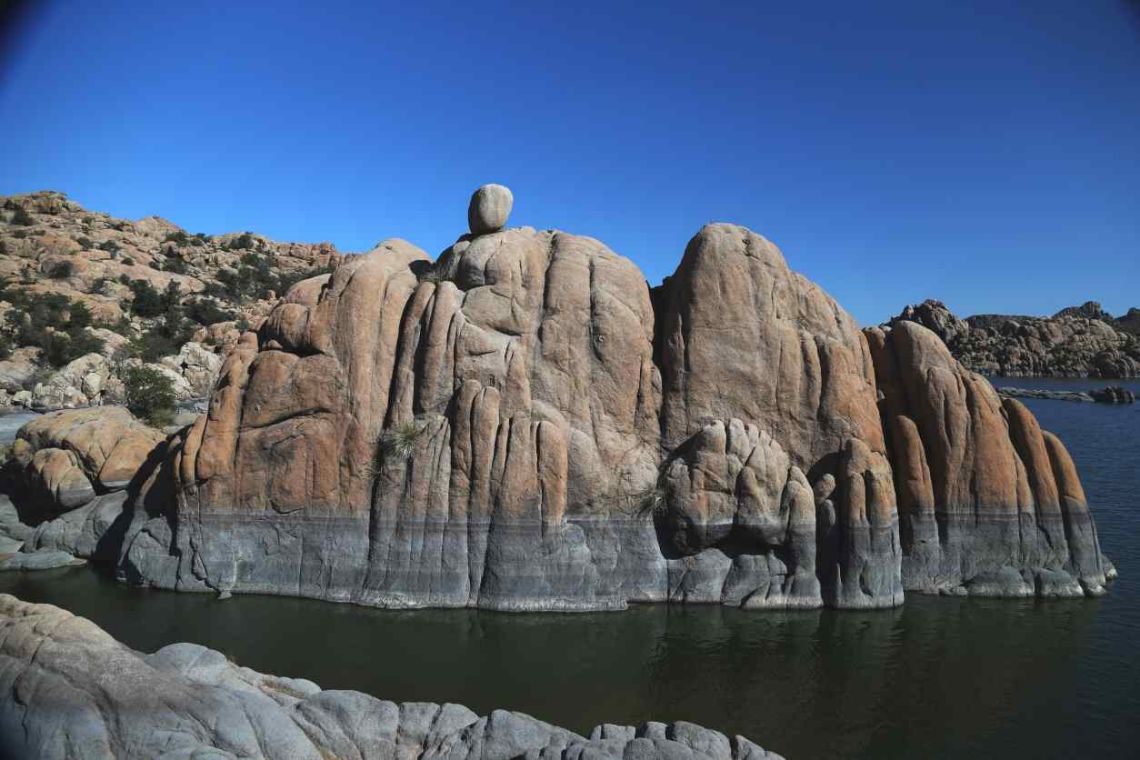 La route nous fait passer par Jerome, petit village perché à flanc de montagne qui rappelle les villages corses, c'est très beau et nous grimpons assez haut. Les rochers avant Prescott sont vraiment magnifiques, les Seychelles sans l'océan puis le Watson Lake va nous permettre de faire une belle balade pour admirer ce paysage très particulier.