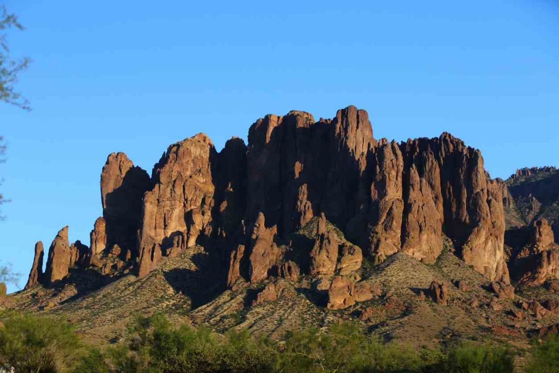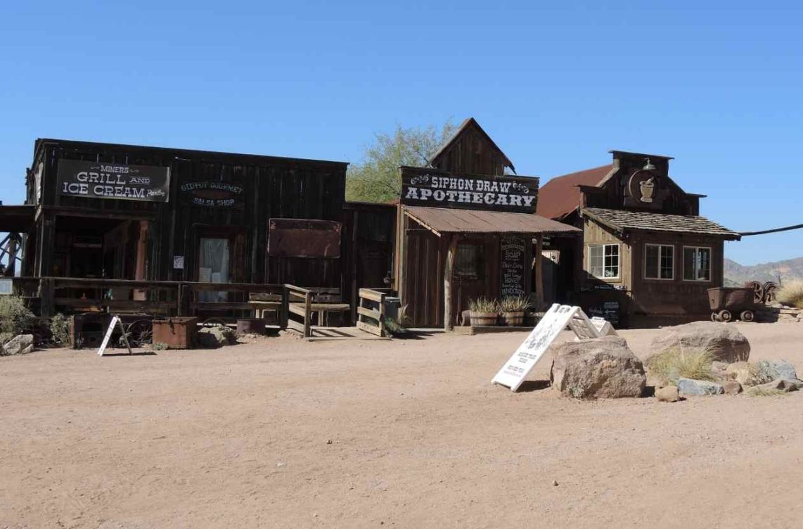Un peu de chauffage pour petit-déjeuner au chaud et nous voici partis pour une belle balade vers Superstition Mountains. Nous revenons pour le repas de 12, non 13h00 qui va nous faire du bien. Le soleil donne à fond nous devrions être bien cette après-midi. Nous partons vers un village baptisé Goldfield Ghost Town, qui est une reconstitution d'un village western mais vraiment très bien fait. Des boutiques partout, bars et autres restaurants, attractions diverses, bref faut laisser des espèces. Nous prendrons une glace chacun qui aurait été suffisante pour trois personnes, on ne regarde pas ici !