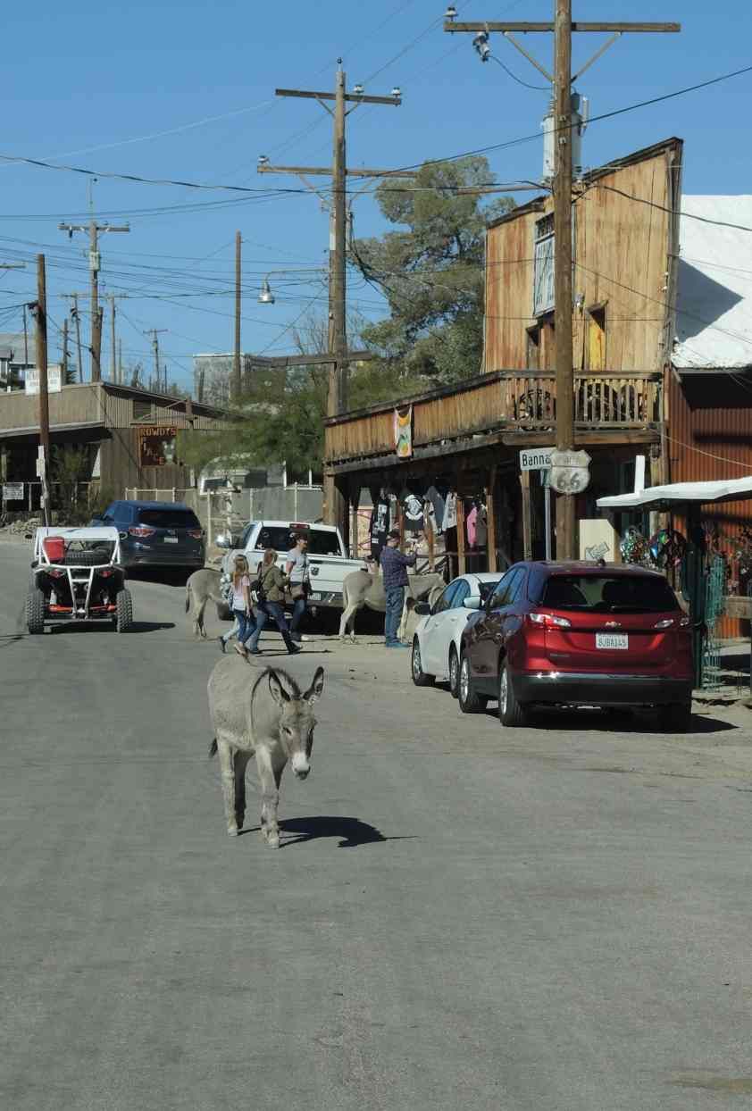 Nous continuons notre route vers le nord et nous allons prendre une partie de la "Route 66" entre Topock et Kingman. Je ne le regrette pas car nous sommes loin des grandes lignes droites, là ça tourne et ça monte, les paysages désertiques sont sympas, nous faisons quelques haltes. Nous traversons le village de Oatman, du monde partout mais aussi des bourricots sur la route. C'est très kitch, c'est est fait pour attirer la foule et de ce côté c'est réussi.
