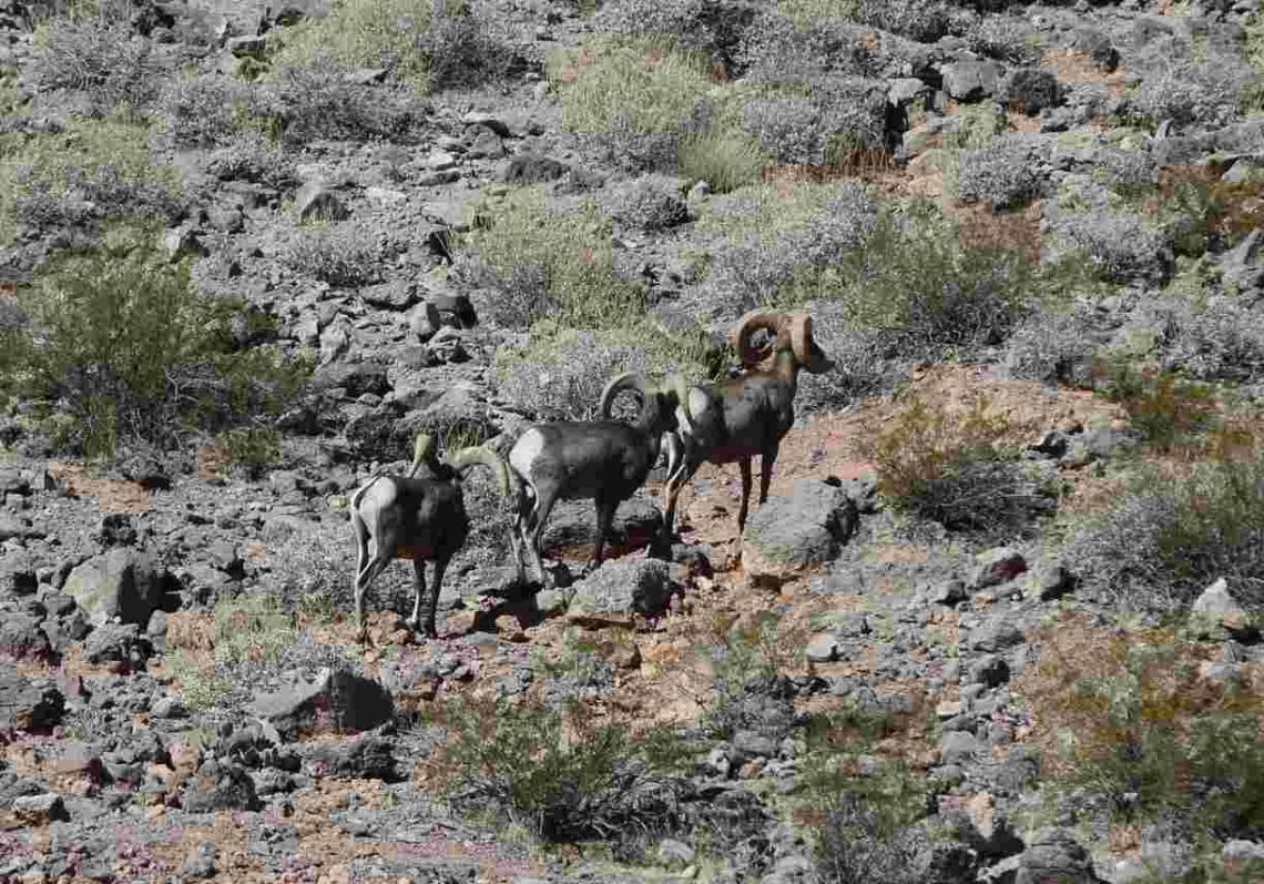 Et bien la nuit ne fût pas si mauvaise avec les boules Quiès, nous partons tranquillement vers 10h00 en direction du centre d'Henderson, nous changeons la bouteille de gaz et faisons quelques courses car il n'y aura plus rien sur notre route après cela. Nous filons en direction du Lake Mead où nous savons trouver de beaux sites pour bivouaquer. Nous stoppons à Redstone où nous croisons un couple français avec deux enfants "Gecko Family", ils voyagent en camping car depuis quatre mois et se dirigent tranquillement vers la Baja au Mexique. Nous déjeunons avec eux à proximité d'une source chaude où il y a quelques "Bighorns" qui viennent pour s'abreuver, de bons échanges sur nos destinations et la suite de notre voyage, nous nous quittons après déjeuner. Eux filent vers la "Valley Of Fire" et nous, nous allons au bord du Lake Mead où nous nous trouvons un super site pour la nuit. Beau coucher de soleil en prévision. Nous passons le restant de l'après midi dehors dans nos fauteuils, enfin un peu de repos. Nous allons assister en soirée aux belles couleurs changeantes, c'est superbe, nous aimons beaucoup ces instants magiques.