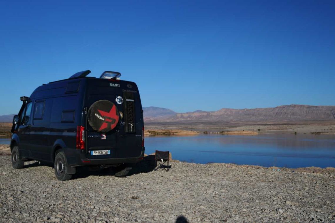 Bivouac au bord du Lac Mead. Fin de journée comme nous les aimons.