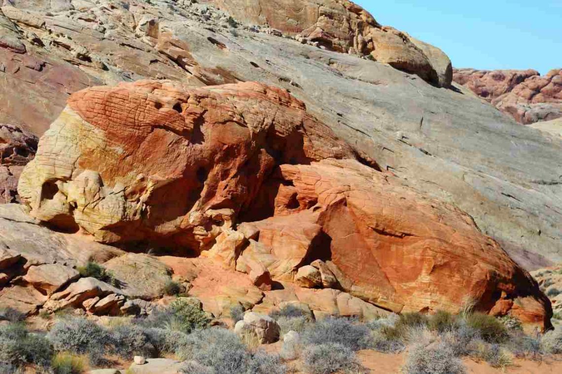 Nous quittons notre super emplacement au bord du lac pour aller dans un autre superbe endroit, la Valley of Fire toujours dans le Nevada et non loin du Lake Mead. La première chose à faire c'est d'aller retenir une place au campground si nous en trouvons une autrement nous reviendrons au bord du Lake Mead. Nous trouvons notre bonheur et retenons l'emplacement pour deux nuits, il ne restait que quatre places disponibles qui seront vite prises.