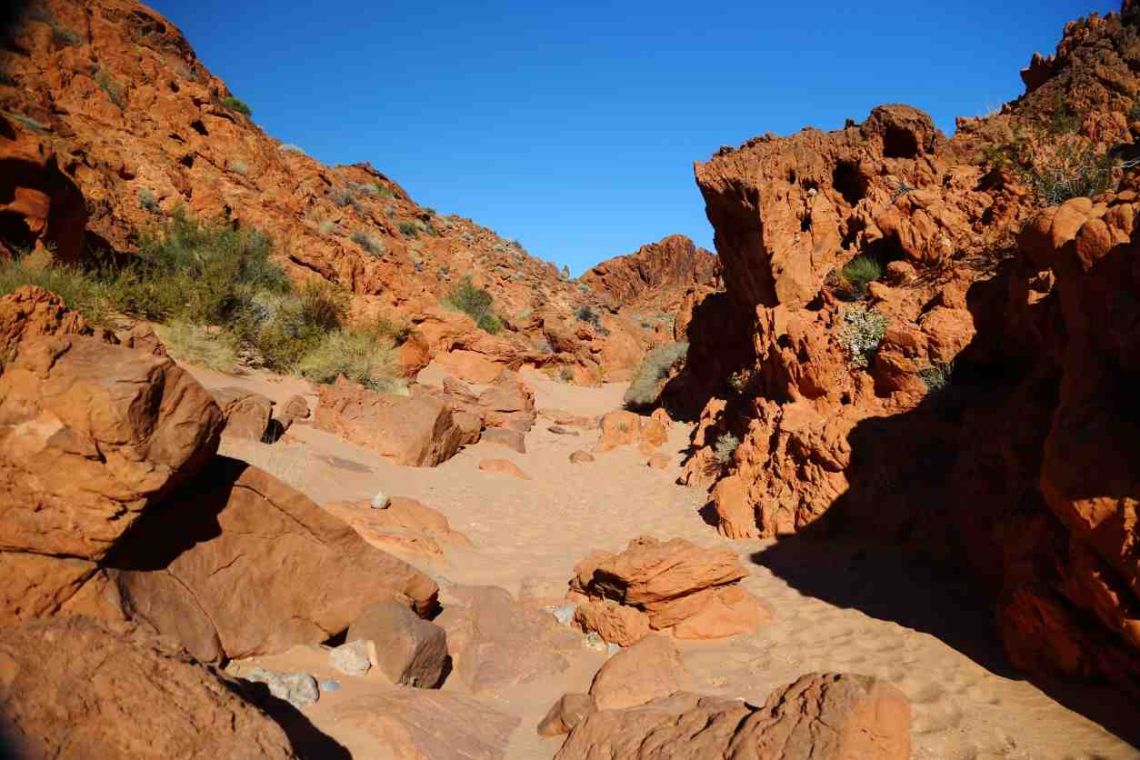 Pour notre dernière rando nous avons fait fort, un wash (lit de torrent) entièrement en sable fin, deux heures à crapahuter là dedans, au retour nous sommes fourbus, la chaleur n'aide pas non plus. Il nous faut aller refaire le plein pour au moins ce soir en nourriture car nous avons tout épuisé et donc nous partons pour Overton, petit village avec un supermarché et un McDo pour le WiFi. Nous déjeunons sur le parking du magasin après avoir envoyé le site et consulté nos messages.