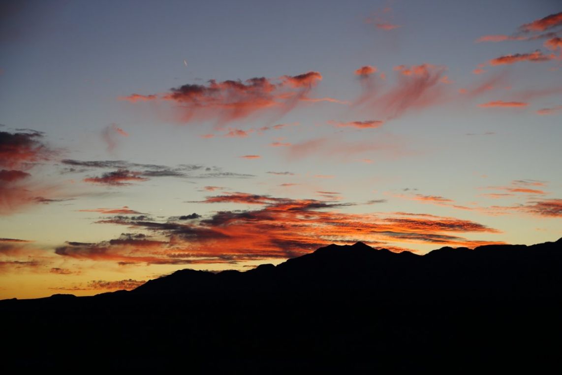 Quelle belle nuit mais pas chaud ce matin, 7° dehors, un peu de chauffage ne fera pas de mal pour le petit dej. Le soleil étant encore derrière les montagnes nous avons le droit aux couleurs changeantes du matin depuis l'intérieur d'Hugo III, c'est beau, une journée qui commence bien.