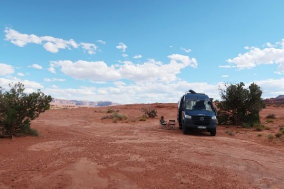 Pour le bivouac nous y sommes seuls et nous serons au calme malgré le vent qui souffle très fort, demain route vers Moab où nous devrons faire du ravitaillement pour la suite qui va nous voir reprendre la route vers l'est.