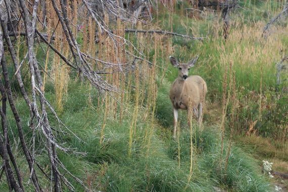 Ce matin le temps semble vouloir se mettre au beau, il semble tout simplement, nous partons donc en balade sur un trail du parc. Le but c'est d'aller jusqu'au "Summit Lake", il ne fait pas chaud et marcher va nous faire du bien surtout que cela va grimper durant une heure et demi. Arrivés au lac nous tombons sur un deer qui ne va pas avoir peur et va nous laisser l'admirer tranquillement. Nous prenons un lunch vite fait car il faut redescendre et retourner au campground pour trouver un site pour la nuit. Tout est "Full", c'est dépités que nous reprenons la route vers un campground avant la frontière des USA. La mouise continue, le campground est fermé et aucune annonce nul part, grrrr. Nous sommes quasi à la frontière et nous y allons et verrons plus tard pour se poser. Problème à la frontière, l'entrée de Françoise à Atlanta a été très mal remplie par cet agent d'immigration nul comme pas un et il va falloir patienter pour passer après différents contrôles. Bref cela nous a pas mal perturbé, nous roulons vers Many Glacier pour trouver un site et le constat est simple à notre arrivée, pas de réservation vous pouvez repartir, grrrr, journée de merde !!! Nous repartons vers Ste Mary et faisons un stop dans un RV Park car je suis crevé et ma moitié aussi, le soleil est un peu plus généreux, nous nous installons correctement, les panneaux solaires donnent bien.