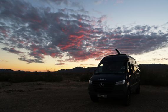 Quel beau soleil nous avons ce matin, au moins nous aurons du beau temps pour aller vers le sud où nous espérons pouvoir faire un stop à Leeds pour aller au Red Cleef Canyon que nous ne connaissons pas. Beaucoup de circulation sur cette Interstates 15, nous arrivons sur Leeds en début d'après midi et filons direct au campground du BLM pour retenir un site. Ah, oui, il y a des places mais il faut tout retenir la veille sur le site du parc. Incredible ! Nous n'en croyons pas nos yeux, même les sites du BLM doivent maintenant être réservés à l'avance. Cela continu et notre déception est de pire en pire. Il va falloir sérieusement songer à rentrer au pays. Nous reprenons la route vers St George et ensuite vers le Lake Mead où nous connaissons un super bivouac et là pas besoin de retenir. Nous y serons seuls et assisterons à un superbe coucher de soleil. Demain nous essaierons d'aller au Red Rock Canyon à proximité de Las Vegas mais nous ne croyons plus à rien.