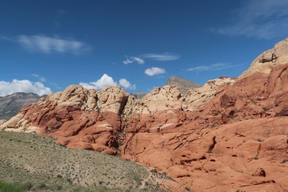 Superbe nuit, certainement la meilleure depuis notre arrivée aux USA. Nous quittons tranquillement notre bivouac pour aller visiter le Red Rock Canyon. Mais avant il nous faut trouver du gaz car la bouteille est vide. Cela sera vite fait et nous voici partis vers le parc, beaucoup de monde sur la route et à l'entrée, nous nous posons des questions sur la suite. Tous les parkings "view point" sont saturés, nous arrivons malgré tout à faire des stops et prndre des photos de ces jolis roches rouges. Nous déjeunons sur place et continuons notre visite jusque 15h00 puis partons vers la campground. Il est quasiment vide, six sites de réservés et une cinquantaine sont libres. Nous allons voir l'Host comme indiqué sur le site et là grosse surprise, encore une, elle nous dit d'aller plus haut sur deux miles, nous trouverons du réseau et pourrons faire la réservation sur le site web du parc. Nous n'en revenons pas, allons où elle nous a indiqué où trouver du réseau et nous nous regardons complètement dépités, désabusés même, et finissons par nous dire que nous allons aller sur Las Vegas, retenir un site au KOA du Boulder BLVD que nous connaissons et ce soir nous irons nous faire un buffet dans un des casinos du Strip pour nous remonter le moral !
