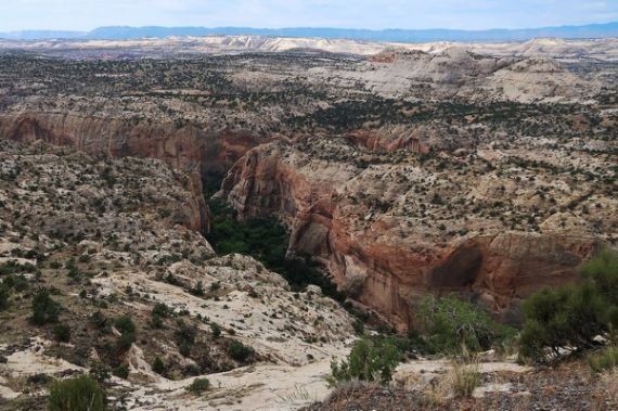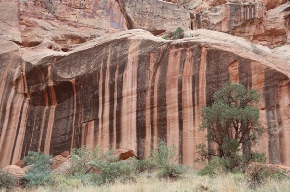 Les orages grondent au loin, nous partons justement vers eux mais cela n'aura pas de conséquence pour nous. Nous prenons la "scenic Bywy 12" mais les vues ne sont pas terribles sans le soleil. Nous serons sur Capitol Reef, but du jour, en fin de matinée et nous allons directement sur le Capitol Gorge Road. Beaucoup de pistes sont fermées suite aux orages, pas grave nous marcherons. Nous déjeunons sur place et partons faire une balade dans le Capitol Gorge, pas beaucoup de lumière mais cela ira. Nous rencontrons un couple d'ami, Armelle et Christian, sur le chemin et papotons un bon moment. Nous nous étions rencontrés en Alaska, maintenant ici, et oui, le monde est petit. Nous continuons notre balade et retrouvons le soleil, qui va nous donner chaud pour le retour. Nous retrouvons HugoIII vers 16h00 et partons vers notre bivouac habituel ici avant Torrey. Soirée cool et repos, nous en avons besoin.