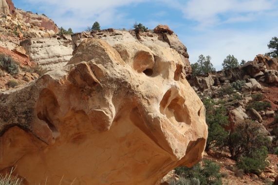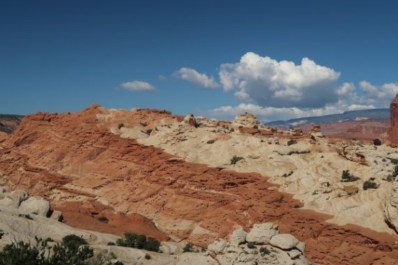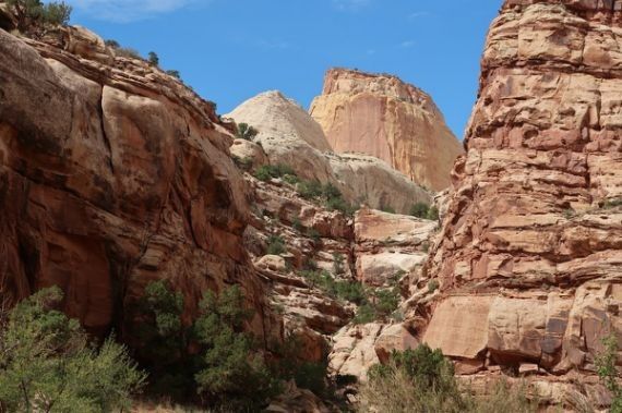 Une très bonne nuit au calme et ce matin nous sommes en forme pour aller faire une belle rando sous le soleil qui est revenu. Le petit déjeuner est vite avalé et nous voici partis pour faire une balade presque seuls. Nous ne croiserons personne à la montée, uniquement quand nous redescendrons. Nous retrouvons les couleurs et les formes des rochers que nous avions tant appréciés en 2014. Les photos vont bon train et avec le soleil c'est vraiment super. Nous redescendons vers 12h30 et partons sur Torrey pour y faire quelques courses car l'eau part très vite avec la chaleur. Ensuite nous retrouvons notre bivouac pour y déjeuner car il commence à se faire tard.