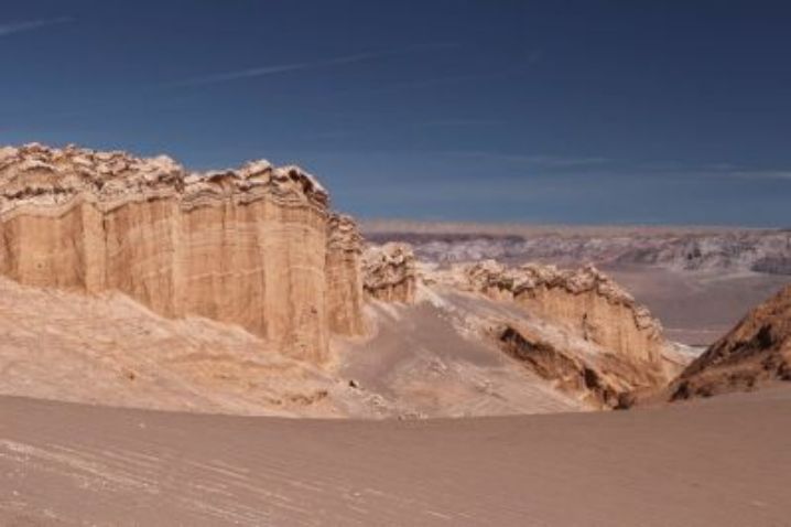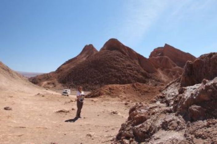 Ensuite nous allons vers la "Valle de la Luna" pour y découvrir des endroits aussi somptueux que ceux des derniers jours. Nous ne regretterons pas d'être venus ici même si en plein après-midi les couleurs ne sont pas aussi belles que dans la soirée au soleil couchant. La piste serpente dans des formations rocheuses absolument splendides et aux teintes différentes. Nous y trouvons également des canyons que nous allons visiter à pied, il fait très chaud mais cela vaut la peine de se balader dans ces différents sites. Quelques dunes de sable très hautes servent à faire du surf mais nous sommes seuls et pouvons visiter en toute tranquillité. Nous rencontrerons un cycliste français avec qui nous ferons un brin de causette. Notre retour à SPA se fera en fin de journée, nous sommes crevés mais heureux d'avoir vu ce que nous avons vu et qui n'a absolument rien à voir avec la "Valle de la Luna" en Argentine.