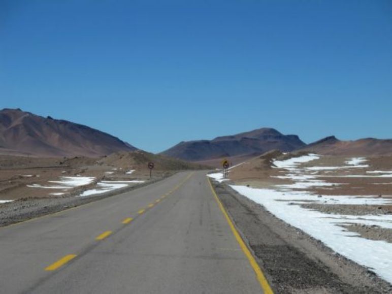Ce matin nous reprenons la route de l'Argentine mais avant il nous faut aller faire les formalités de douanes au poste de San Pedro De Atacama. La frontière est à 160Km mais c'est ici qu'il faut faire tamponner les passeports, idem lorsque nous arrivons d'Argentine. Ce système est très mal fait car pour ceux qui veulent rejoindre la Bolivie en venant d'Argentine, il faut obligatoirement redescendre à ce poste et ensuite il faut remonter les 2400 mètres de dénivelé pour rejoindre la Laguna Verde et le poste frontière bolivien. En plus la montée est très raide, je plains les cyclistes qui veulent aller en Bolivie par cette frontière, nous en avons croisés.