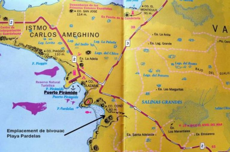 Nous enfilons des lignes droites de plus de 100km pour arriver à Puerto Madryn où nous ferons quelques courses au Carrefour du coin car tout est vide car nous avons passé plusieurs contrôles sanitaires. Nous faisons la halte pour les prochaines nuits au camping de l’ACA et de là nous sommes. Depuis Punta Loma nous apercevons de nombreuses baleines avec leurs petits, c’est sympa tout ça.