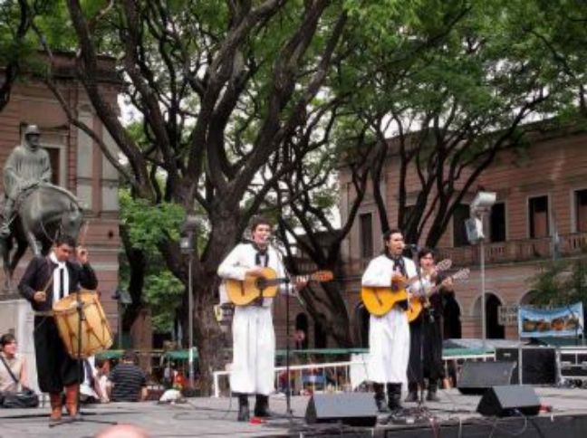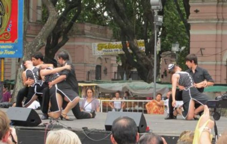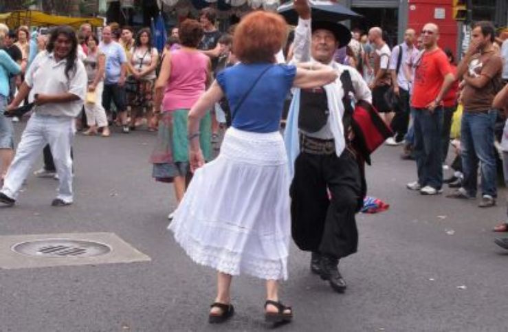 Yann nous envoie ce jour à la Feria de Mataderos, fête sur l'artisanat et les traditions populaires d'Argentine. Nous prenons le bus (N0°126) qui va nous conduire à la Plaza Mataderos, quartier où il y avait de nombreux abattoirs, la campagne dans la ville comme nous pouvons le lire sur certaines affiches. Il y a de nombreux stands, comme un gigantesque marché où sont vendus des produits artisanaux de toutes sortes. Mais le vrai spectacle ici c'est avant tout les groupes de chanteurs qui se produisent sur scène mais aussi sur le macadam où les danseurs anonymes viennent se dépenser sans compter. Ils doivent avoir très chaud car la température est au dessus des trente degrés malgré le ciel voilé. Nous sommes arrivés à 10h30 ce matin et nous allons quitter la Feria vers 16h30, le temps a passé très vite aujourd'hui, nous rentrerons en bus en surveillant les noms de rue car il faut savoir où descendre pour retourner à La Querencia.