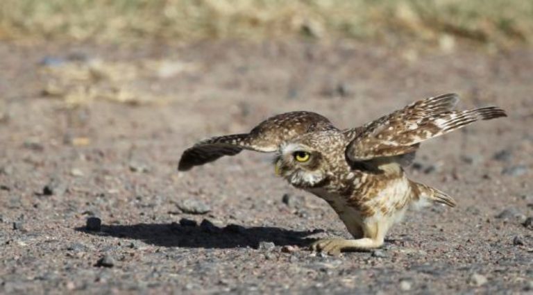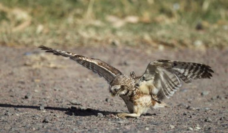 ce n'est pas facile de s'envoler, mais cela va venir. Magnifiques "chevêches des terriers"