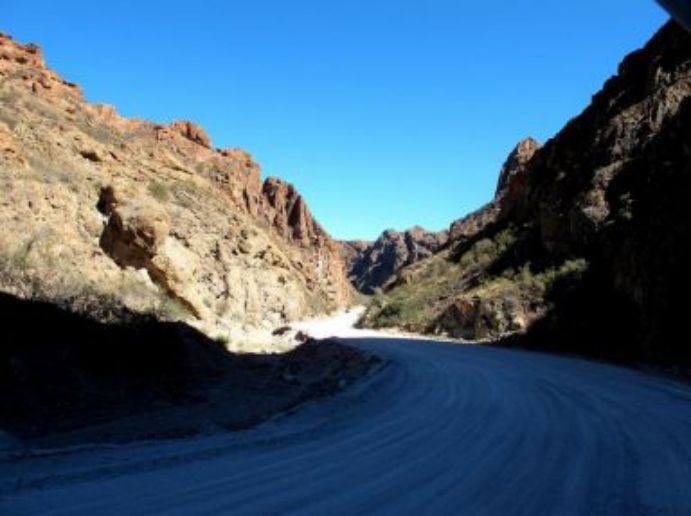 Départ à 9H00 de Camarones, nous rejoignons la "Ruta 3" puis une superbe piste (Rp31) va nous conduire jusqu'au barrage de Ameghino. Ce ne sont que canyon et gorges qui longent le Rio Chico, il y a de nombreux oiseaux, c'est vert! Un petit village très sympa se trouve juste avant la montée qui va nous faire passer sur le barrage.