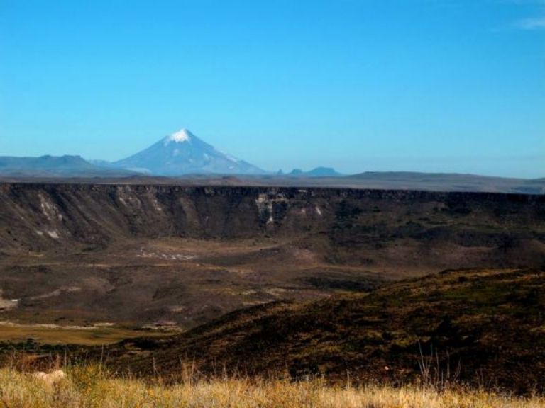 Nous quittons notre emplacement vers 9H30 et prenons la route en direction de Zapala, petite ville où nous ferons étape cet après-midi. Il fait un temps génial pour rouler, au loin le volcan Lanin se dégage sur un fond bleu, c'est beau.