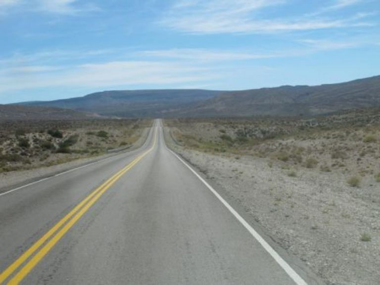 Route en enfilade de longues lignes droites dans une pampa toujours aussi désertique et grillée, nous nous y attendions et cela risque d'être ainsi pendant quelques jours avant de rencontrer les vignes de Mendoza.