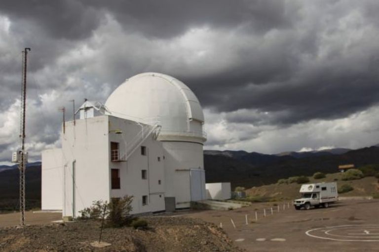 En fait le parc se situe vers un observatoire, celui de El Leoncito et c'est à cet endroit que nous trouvons le bureau des guadaparques. Il y a un lieu de bivouac très sommairement aménagé, nous faisons une petite balade vers une jolie cascade. Nous sommes entourés de verdure et nous montons à l'observatoire (2552m) pour en faire la visite. Sur le parking il y a un véhicule que nous identifions tout de suite c'est celui de nos amis Belges, surprise. Nous nous croisons dans l'observatoire, nous nous verrons plus tard au bivouac. Nous allons faire une visite très intéressante et avec une jeune argentine qui va nous parler tout doucement en espagnol.