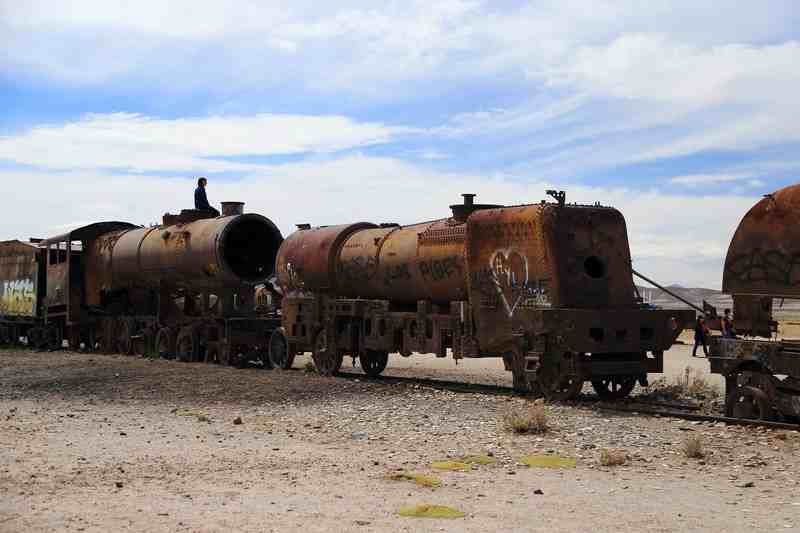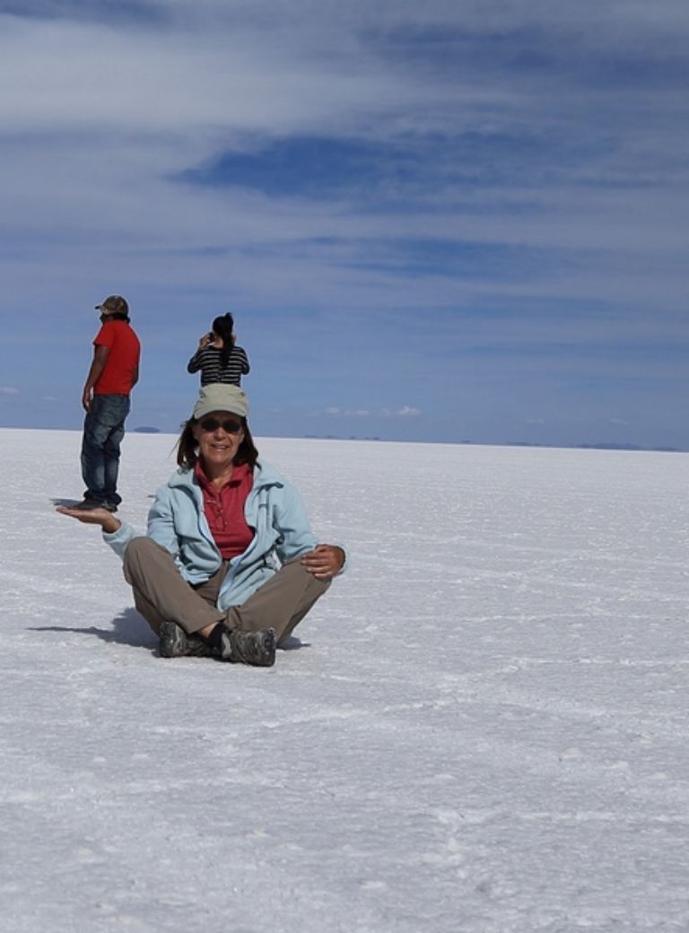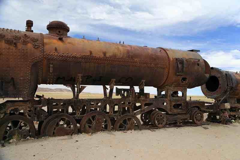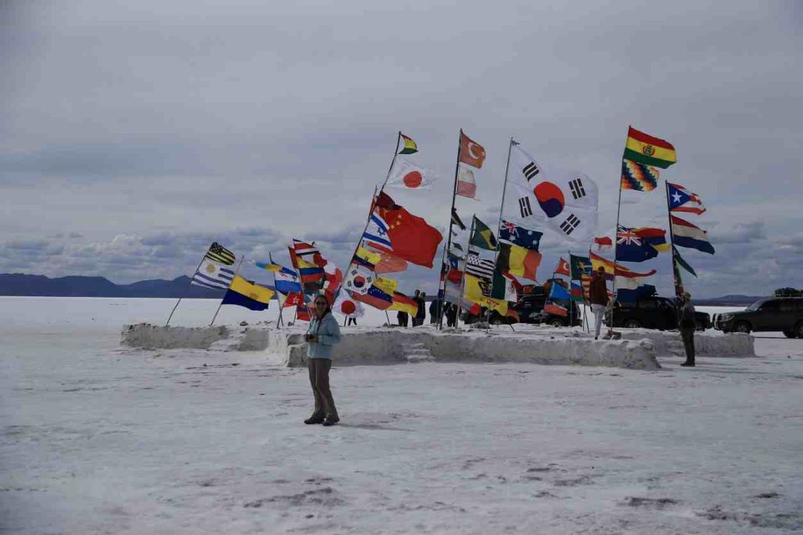 Nous avons retenu un tour avec une agence du centre (Andrea Tour) et nous partons à dix heures avec 5 autres personnes plus le chauffeur vers le Salar d'Uyuni. Nous commençons la visite par le cimetière de locomotives, puis passons par le petit village de Colchani qui marque l'entrée du Salar et filons vers l'Hôtel de sel qui se situe entre Uyuni et la Isla Incahuasi. Nous y faisons le repas de midi (il est 14h00) avant de continuer la route vers l'Isla et en faisant quelques arrêts photos sur le salar.
