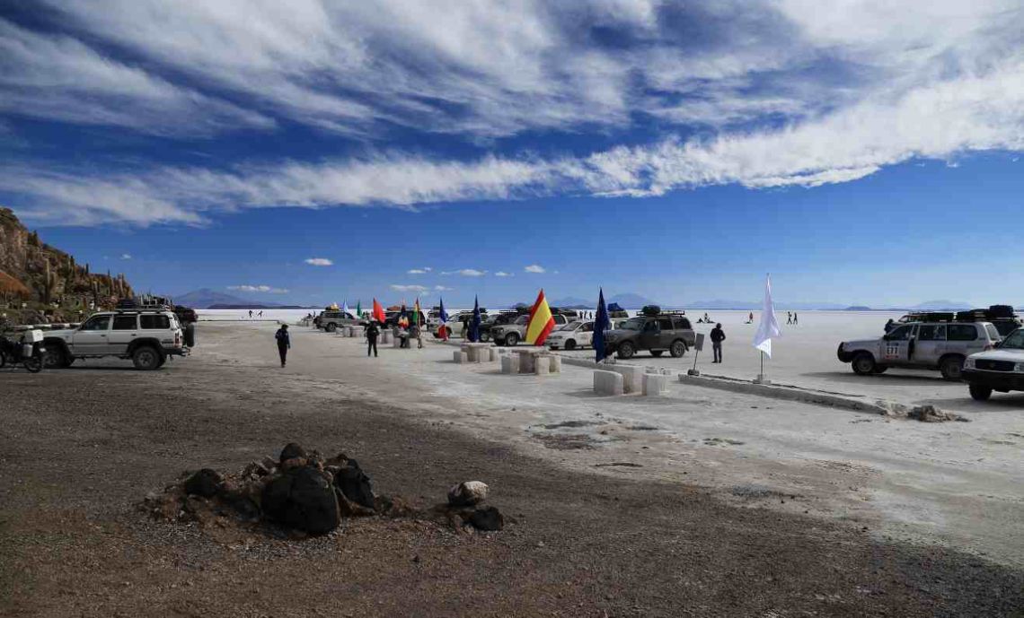 Quelle nuit, beaucoup de mal à respirer, le cœur qui s'emballe, un mal de tête épouvantable, bref ce n'est pas la forme ce matin. Impossible d'avaler quoi que ce soit, tout m'écœure aussi je prends la décision de redescendre au plus vite car ici nous sommes à 4400 mètres et cela ne me convient pas du tout. Je préviens nos amis et leur annonce que nous partons, fais un au revoir et nous disons à bientôt à Joëlle et René puis j'entame la piste qui va être des plus affreuses que nous ayons faite jusqu'à ce jour. cinq heures pour faire les 110 premiers kilomètres, belle moyenne et la peur de casser une pièce mécanique et ici personne ne viendra nous dépanner, nous verrons deux véhicules au loin de toute la descente. Finalement tout se passe bien et nous finissons par retrouver une piste plus roulante jusque Uyuni, il reste 170km à faire. Nous y sommes vers 16h30 en étant partis à 8h30 ce matin et avons fait 280km, nous sommes à 3680 mètres et je suis nettement mieux. Le Salar d'Uyuni étant encore assez humide nous décidons de faire la visite avec un TO au moins Hugo ne prendra pas un bain de sel. Nous avons une adresse donnée par René et Joëlle et nous retenons un tour pour la journée de demain, au moins nous sommes pas venus ici pour rien et il y a longtemps que nous voulions faire ce Salar. Nous avons trouvé un bivouac en pleine ville, devant un hôtel et juste en face d'une caserne de militaire. Ce soir nous sortons, nous allons au restaurant en espérant que mon mieux ne sera pas plus mal.