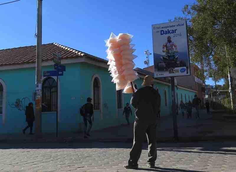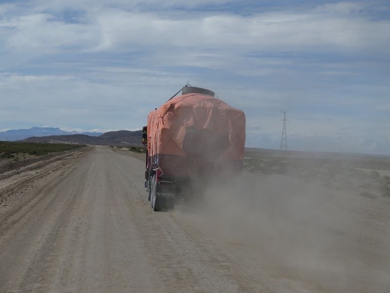 Nous allons faire ces 200km en 8h00, nous sommes cassés à la fin et continuons vers Villazon et la frontière de La Quiaca que nous atteignons vers 18h00, nous respirons mieux après le stress de cette piste car casser ici aurait été un vrai drame. Nous passons relativement vite les deux frontières bolivienne et argentine, passons au contrôle "phytosanitaire", une franche rigolade qui nous coûte 50$Ar pour une pulvérisation d'un produit X sur la boue qui est partout. Nous continuons un peu la route et faisons un stop à Abra Pampa sur le parking devant une station service, nous dormirons bien compte tenu de cette grande journée.