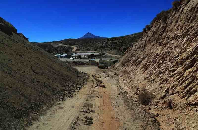 route vers la Bolivie, le Licancabur à 5960 mètres et le poste frontière